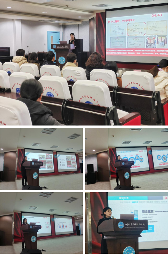 会上,50位护士长以PPT汇报的形式,围绕2021年度目标任务完成情况、创新工作、亮点工作、人才培养、团队建设、行风建设及廉政从业等方面进行5分钟的述职述廉,全面总结了过去一年的工作,展示了科室亮点成绩,同时总结不足并汇报了2022年的重点工作计划。