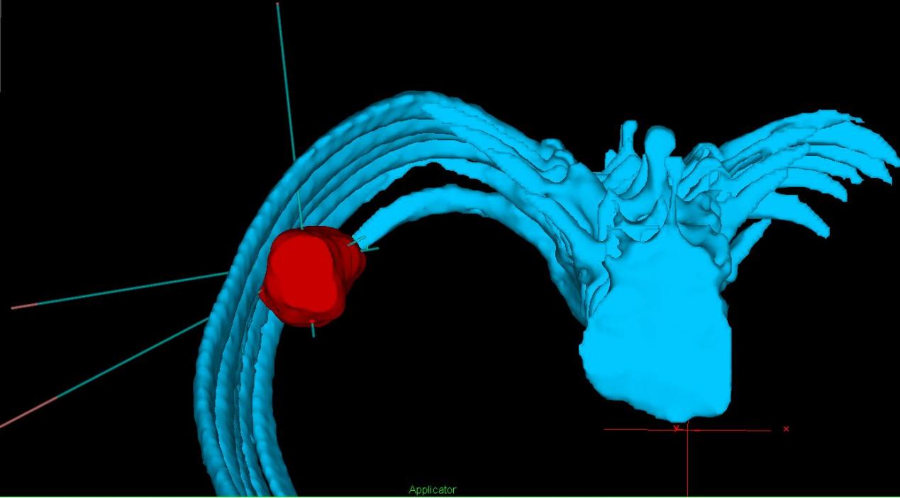肿瘤科在放射治疗方面目前主要包括动态调强放疗、立体定向放射治疗(SRS、S BRT)、静态调强放疗、三维适形放疗、铱-192三维后装治疗、近距离插植放疗及其他常用放射治疗技术,开展了“基于无创体 位固定的脑转移瘤立体定向放疗技术”“3D打印制作放疗组织补偿膜技术”“甲状腺相关性眼病的容积弧形调强放射治疗(VMAT) 技术”“EPIgray在体剂量验证技术在胸部肿瘤放疗中的应用”等多项放疗新技术。同时开展肿瘤消融、介入、高强度聚焦超声等微创肿瘤治疗技术。