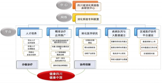 在消化系统疾病发病机制相关的理论体系基础上开展进一步探索研究,形成一系列消化系统疾病“防”、“筛”、“诊”、“治”的成果并推广应用到省内外,力争提高四川省消化系统疾病诊疗水平,推动我省和川东北区域消化系统疾病防控进程。