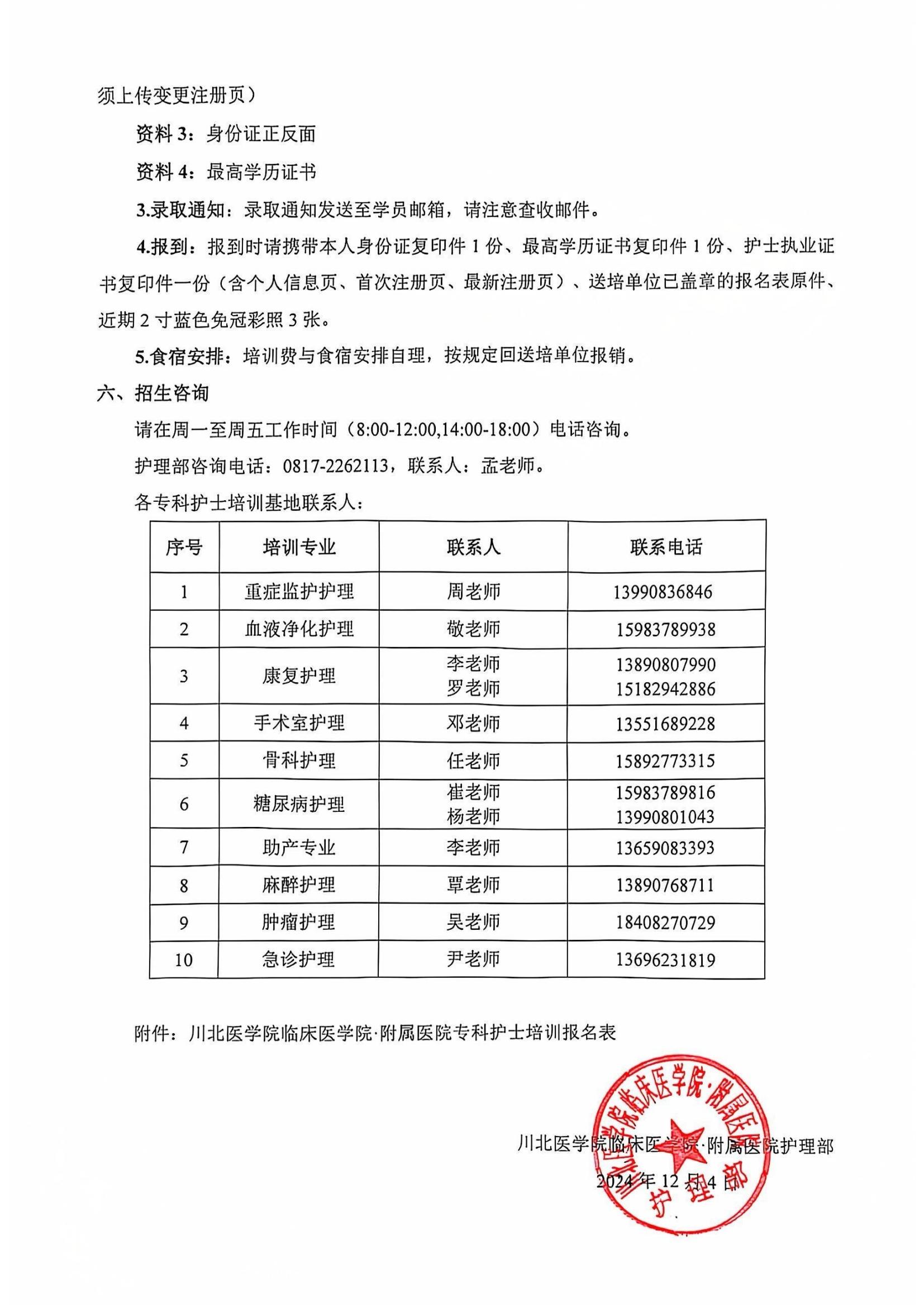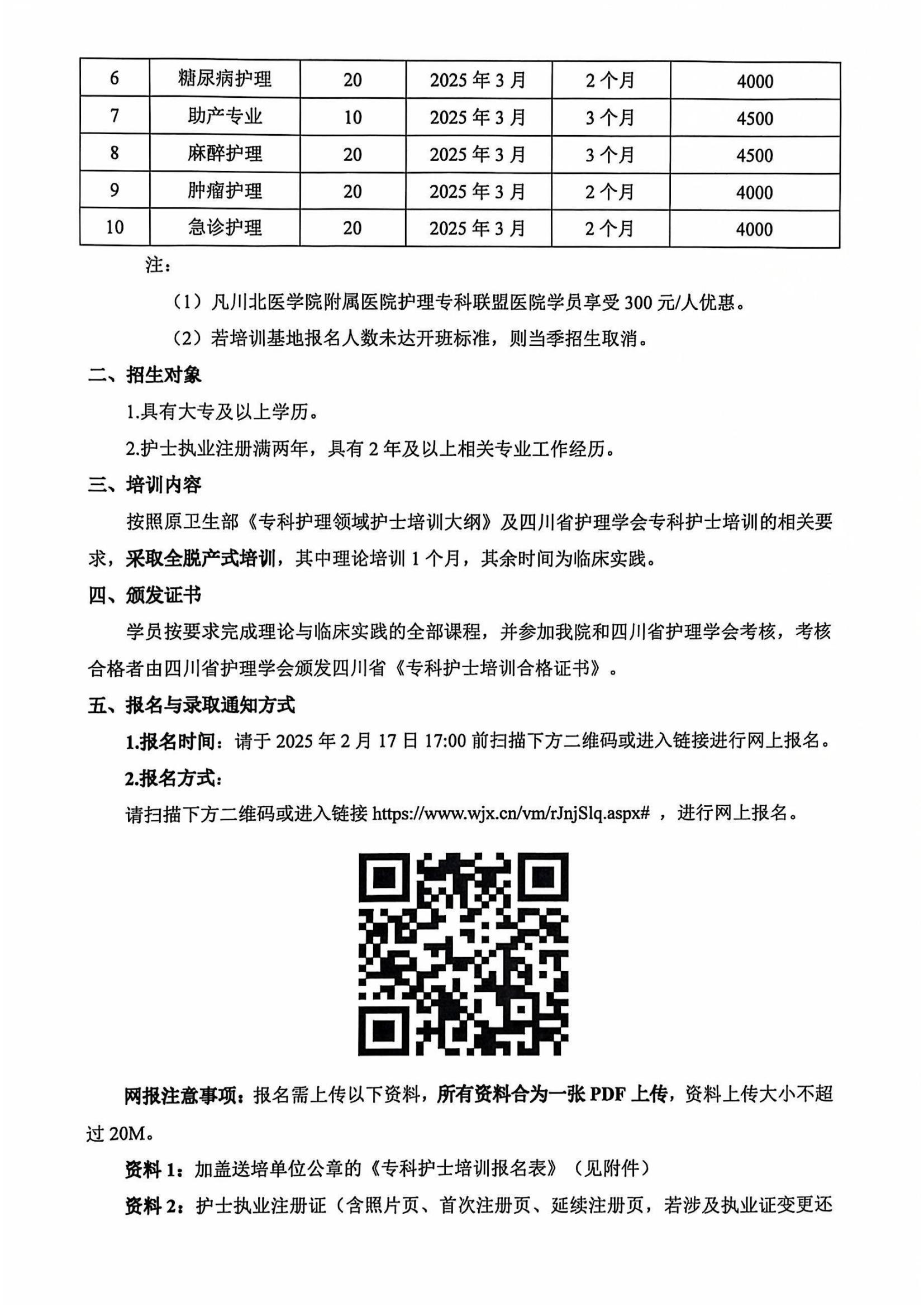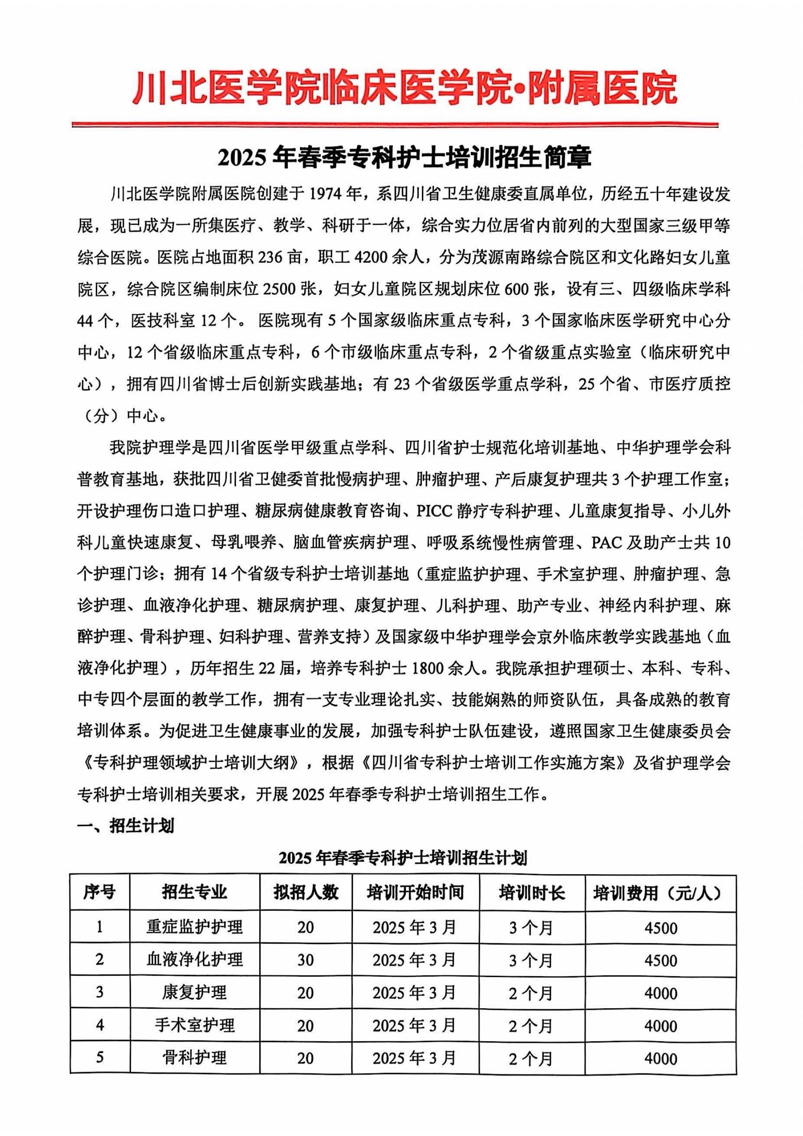 川北医学院临床医学院•附属医院2025 年春季专科护士培训招生简章