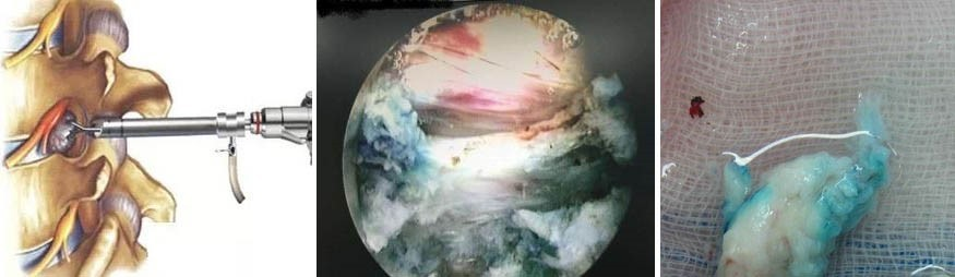 经皮脊柱内窥镜技术下行腰椎间盘切除术,直视下应用不同的器械切除椎间盘突出致压物而解除神经根及硬膜囊的压迫来达到治疗目的。与开放手术相比,局部麻醉对全身各重要脏器无干扰,安全、创伤轻、出血少、恢复快、疗效可靠、并发症少、费用低。