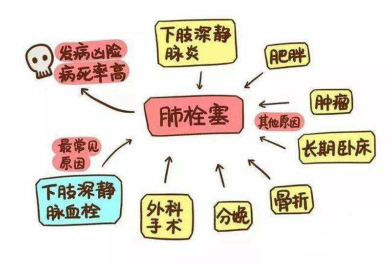 (7)先天性因素引起的肺栓塞,可行基因检测,明确病因,必要时口服抗凝药物预防。