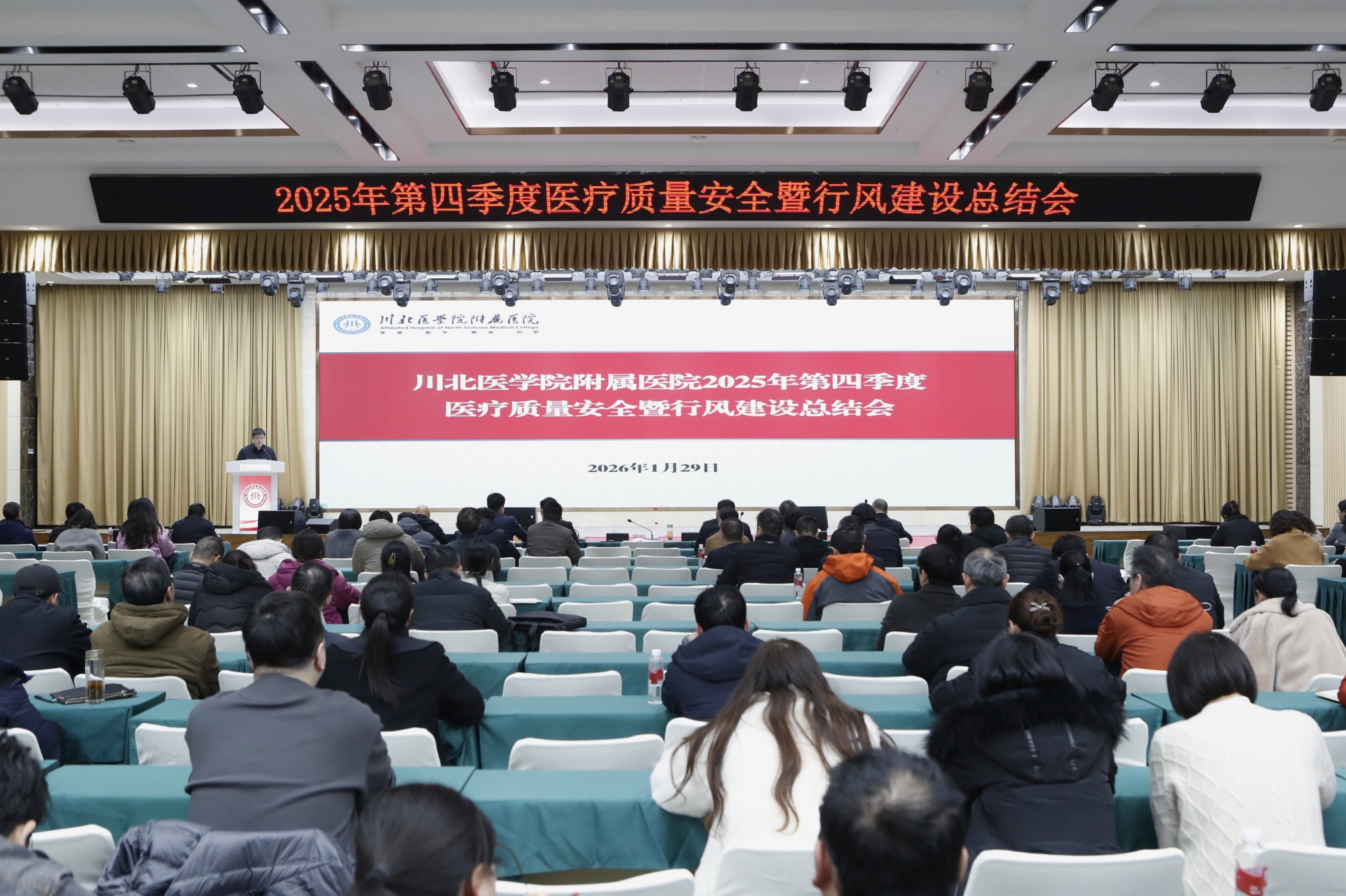 129日,我院组织召开2025年第四季度医疗质量安全暨行风建设总结会。医院党政领导班子成员,相关职能部门负责人,临床医技科室正、副主任,正、副护士长,医疗组长共计200余人参加会议。会议由副院长唐晓平主持。