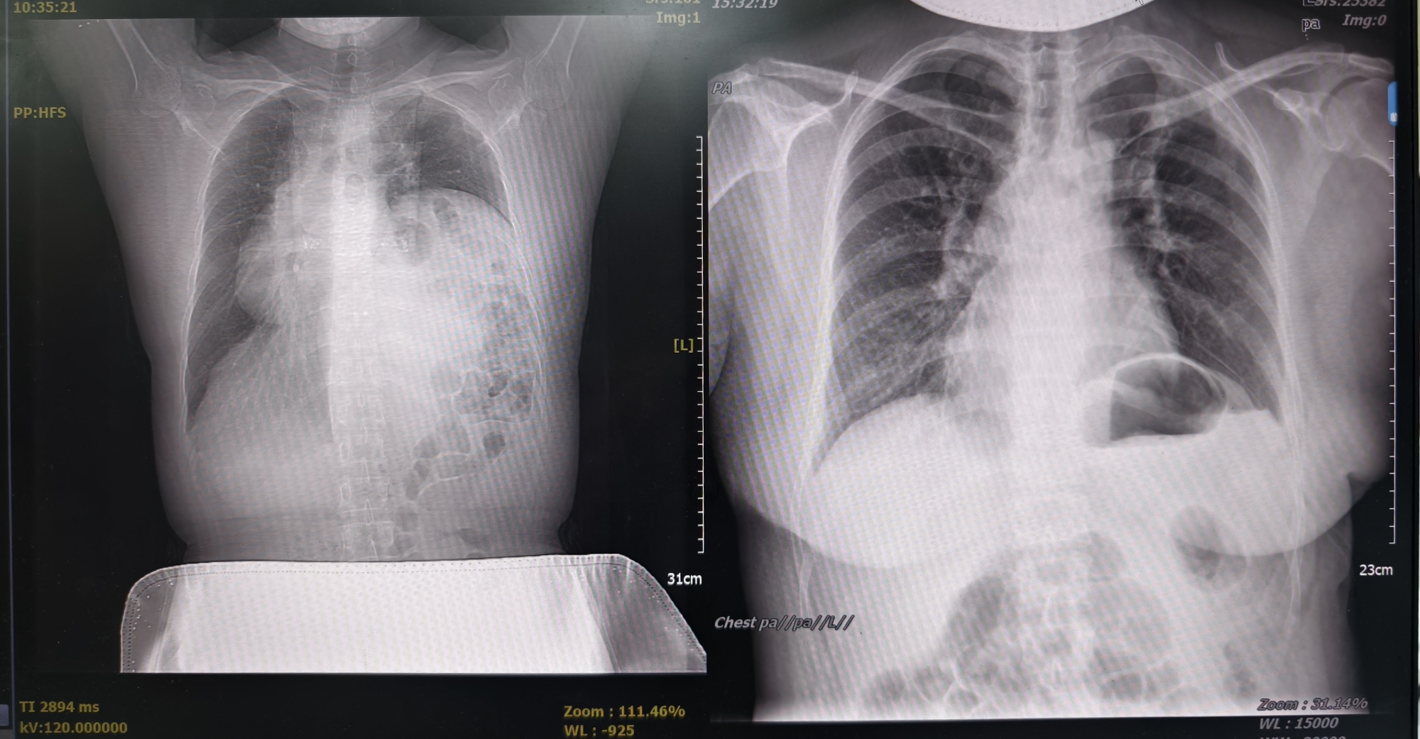 患者贾女士因“进食后腹胀、气促10余天”入院,胸部CT显示:左侧膈肌抬高明显,最高点甚至达到第3-4肋间,左肺及心脏明显受压。膈肌作为人体呼吸的核心肌肉,其异常膨升会压迫腹腔脏器,导致腹胀、呼吸困难甚至心肺功能受损。膈肌折叠手术是治疗膈肌膨升的有效手段,传统手术需开胸进行,创伤大、恢复慢;而常规胸腔镜手术虽属微创,但仍需3-4个操作孔。单孔胸腔镜手术具有创伤最小化(仅需一个操作孔)、术后恢复快、术后并发症少等优势,因此经过胸外科付茂勇教授及施贵冬副教授团队充分的术前评估,最终决定采用目前前沿的“单孔胸腔镜技术”,仅通过左侧腋前线第6肋间一个切口,在高清腔镜引导下完成膈肌折叠手术。整个手术历时80分钟,术中出血50毫升。术后第二天患者即可自主下床活动,自诉胸闷、气促等症状消失,术后三天顺利出院。