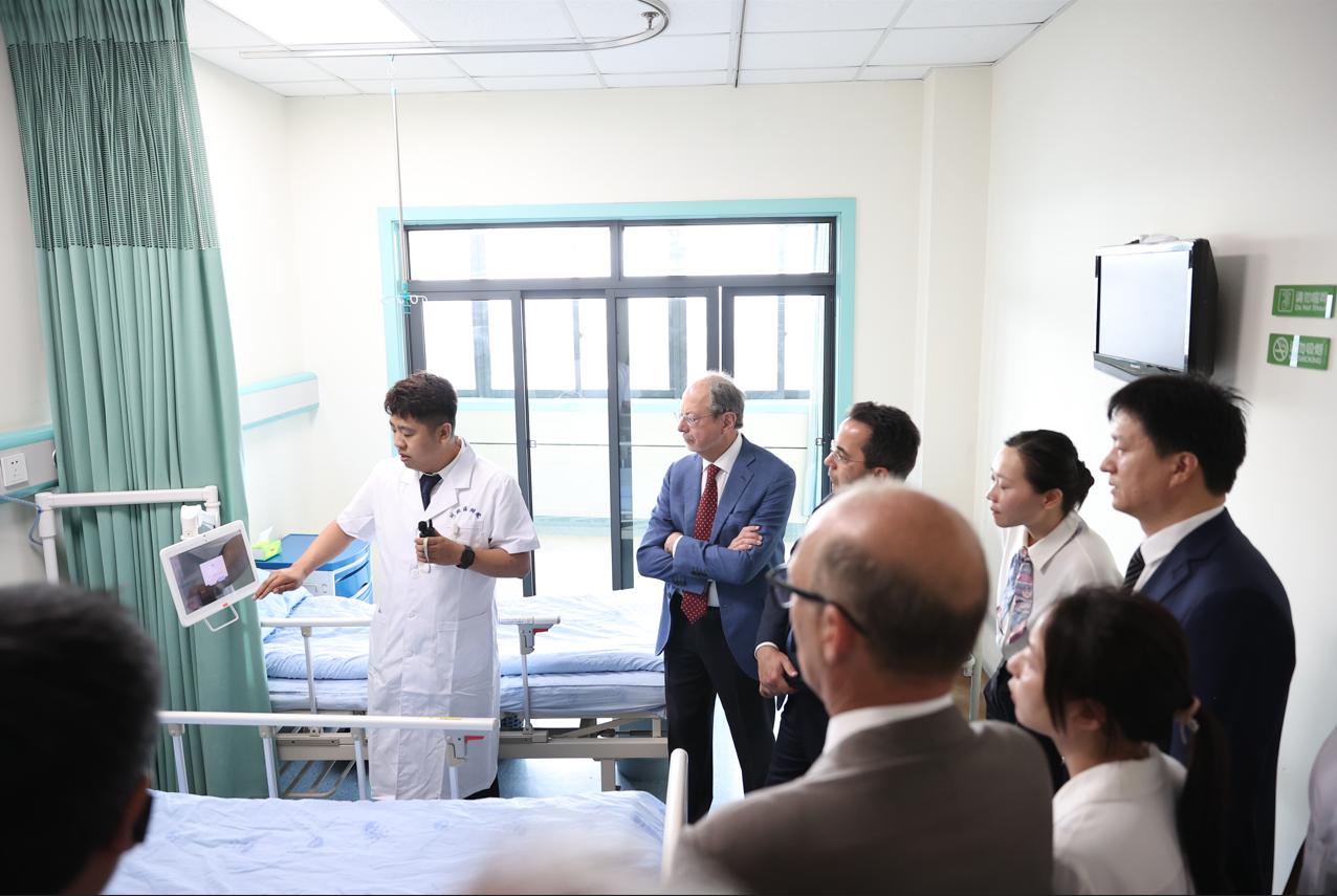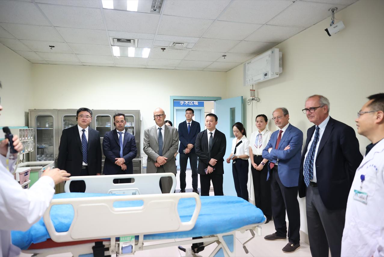 6月12日下午,意大利杰梅利医院台伯岛院区专家代表团一行4人实地考察了医院文化路院区与茂源南路院区,重点参观了介入医学中心、海扶微无创治疗中心、肿瘤科智慧病房、消化内镜中心、生殖医学中心、新生儿科监护室等,对医院在智慧医疗系统及智慧化建设方面的布局与成果留下了深刻印象,为后续合作奠定了直观基础。