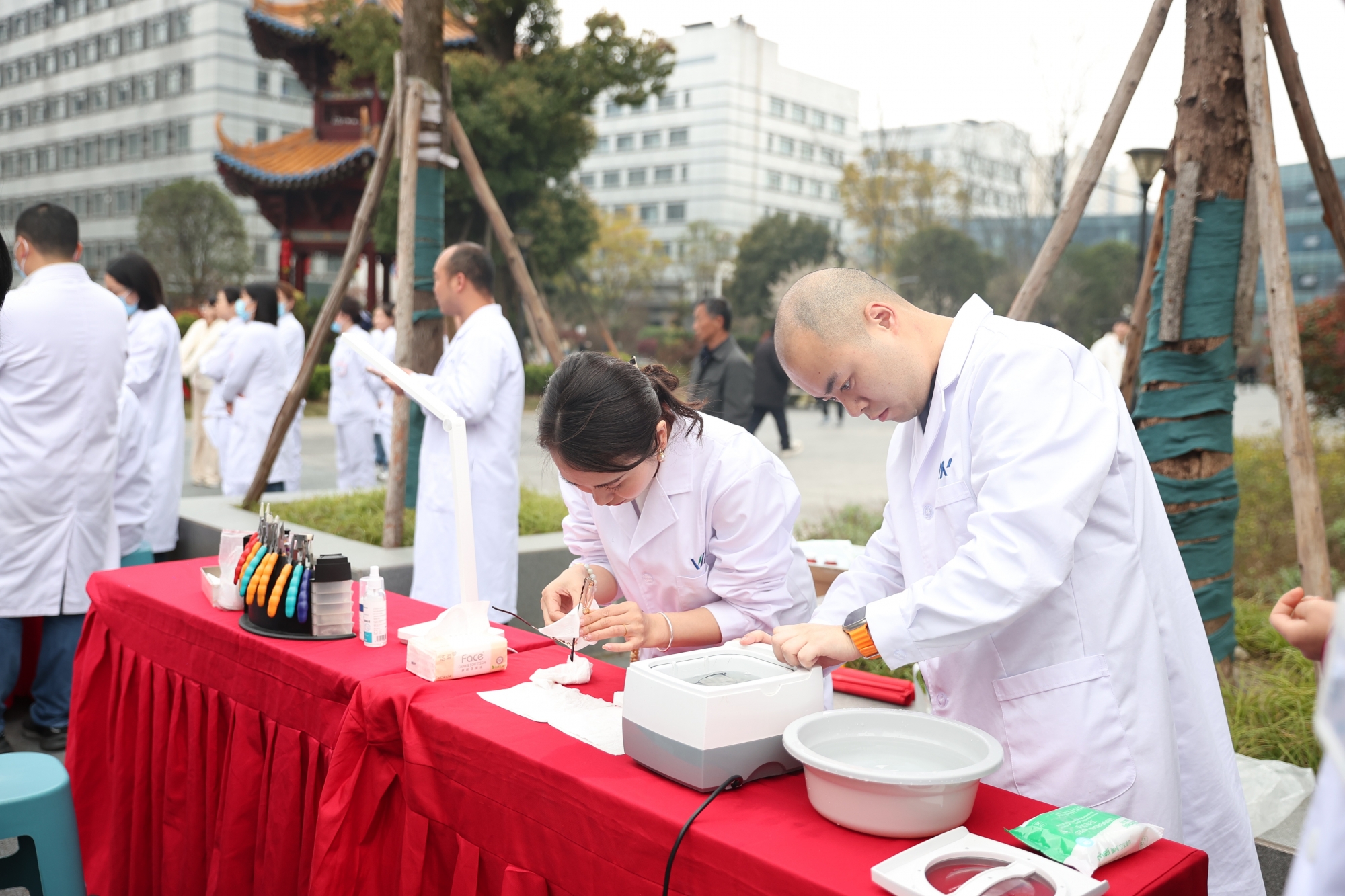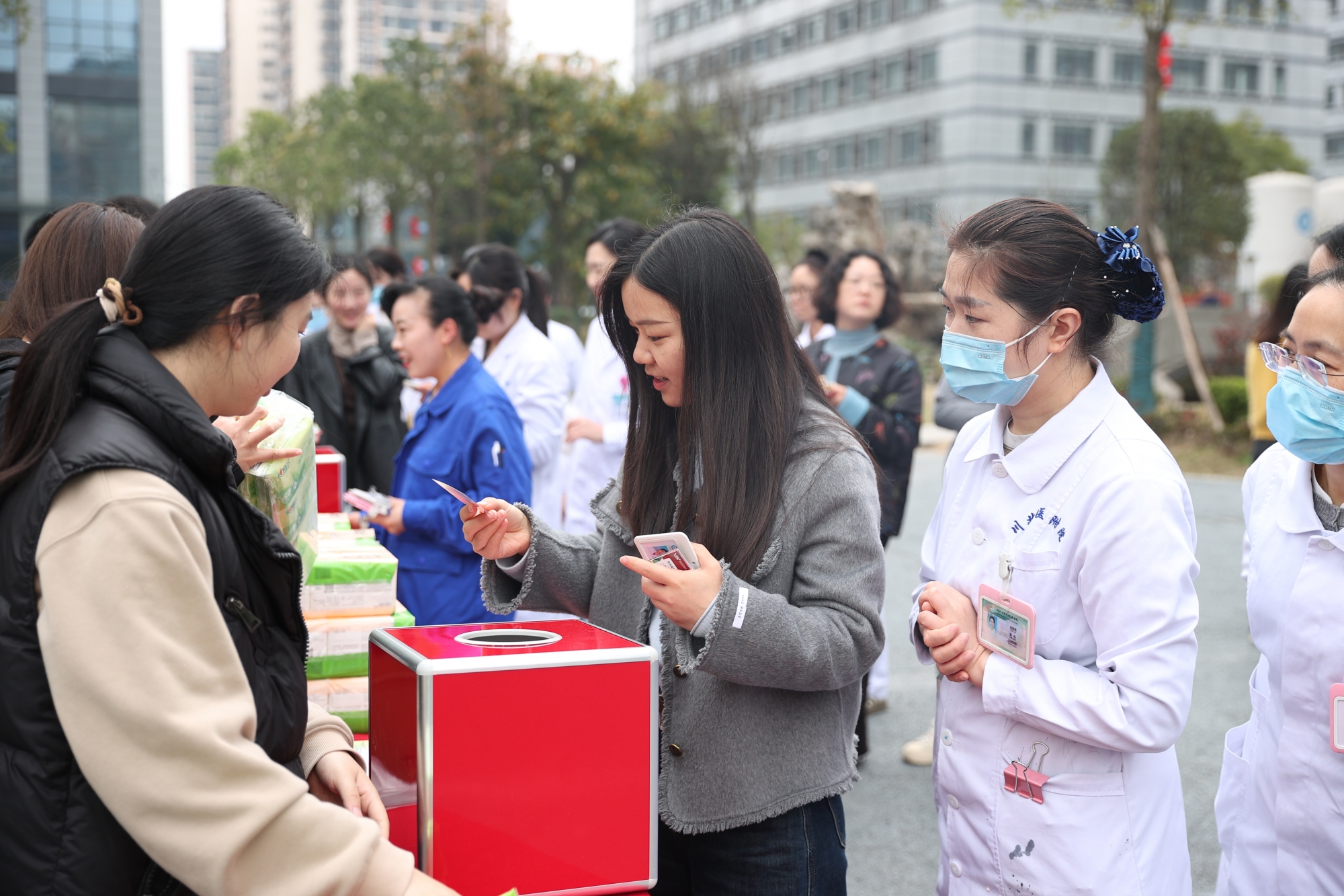 一旁的便民服务站同样人头攒动,温情服务触手可及。美食品鉴区精心准备了多款优质糕点,供职工驻足品鉴;健康关怀区则提供免费眼镜清洗、镜架调试、视力健康咨询及血糖检测等便民服务,专业细致、周到暖心,让每一位前来参与的职工在忙碌的工作之余,真切感受到来自医院的尊重与关怀。