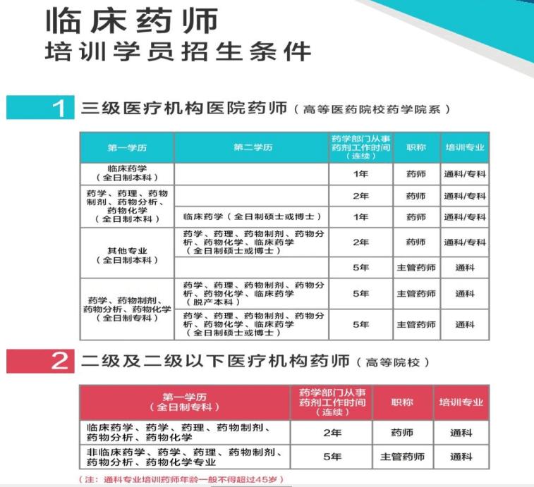 表2 临床药师培训学员招生条件