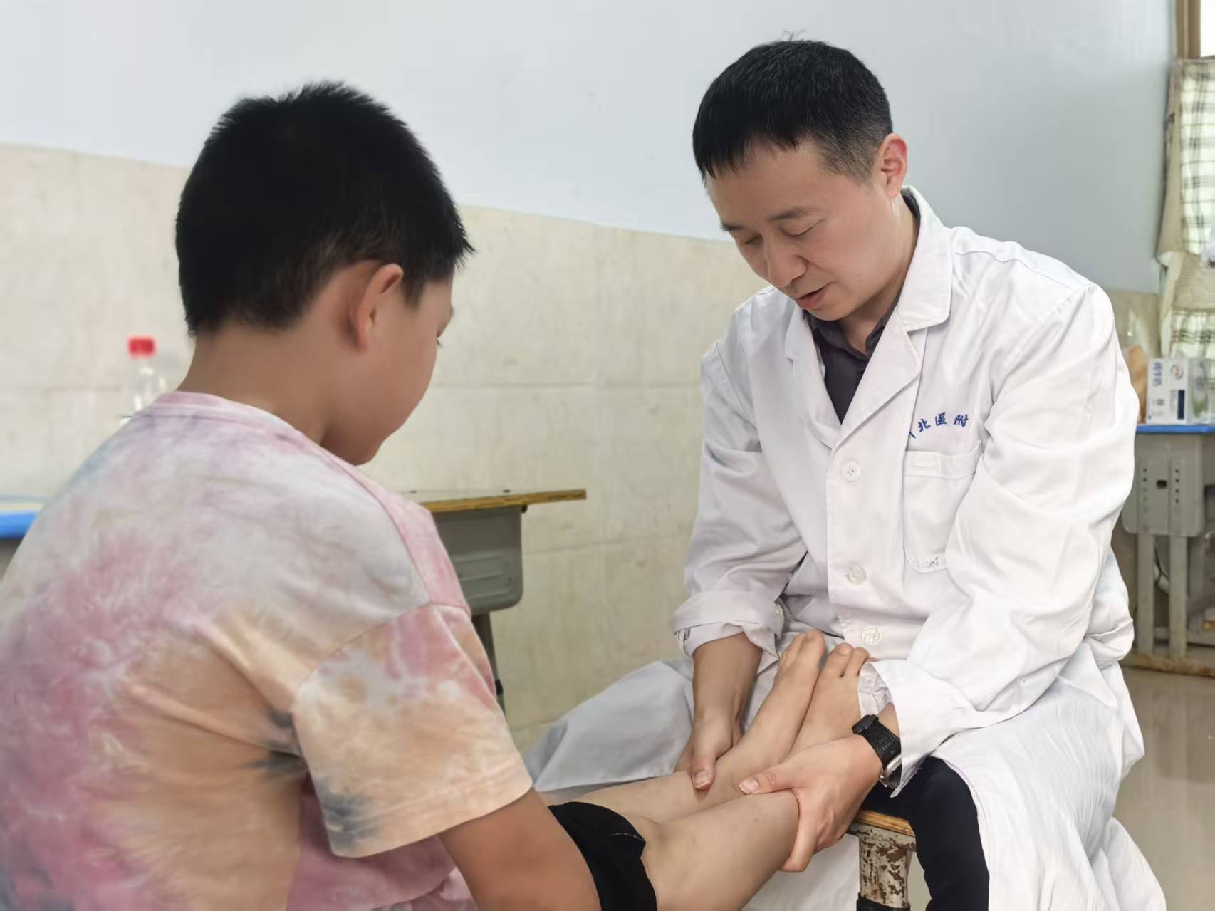 “谢谢叔叔阿姨,我今天才知道自己扁平足,还学到了矫正操!”四年级留守儿童小名(化名)脸上洋溢着灿烂的笑容。王城书记蹲下身鼓励他要坚持锻炼、好好吃饭,长大后成为对社会有用的人。
