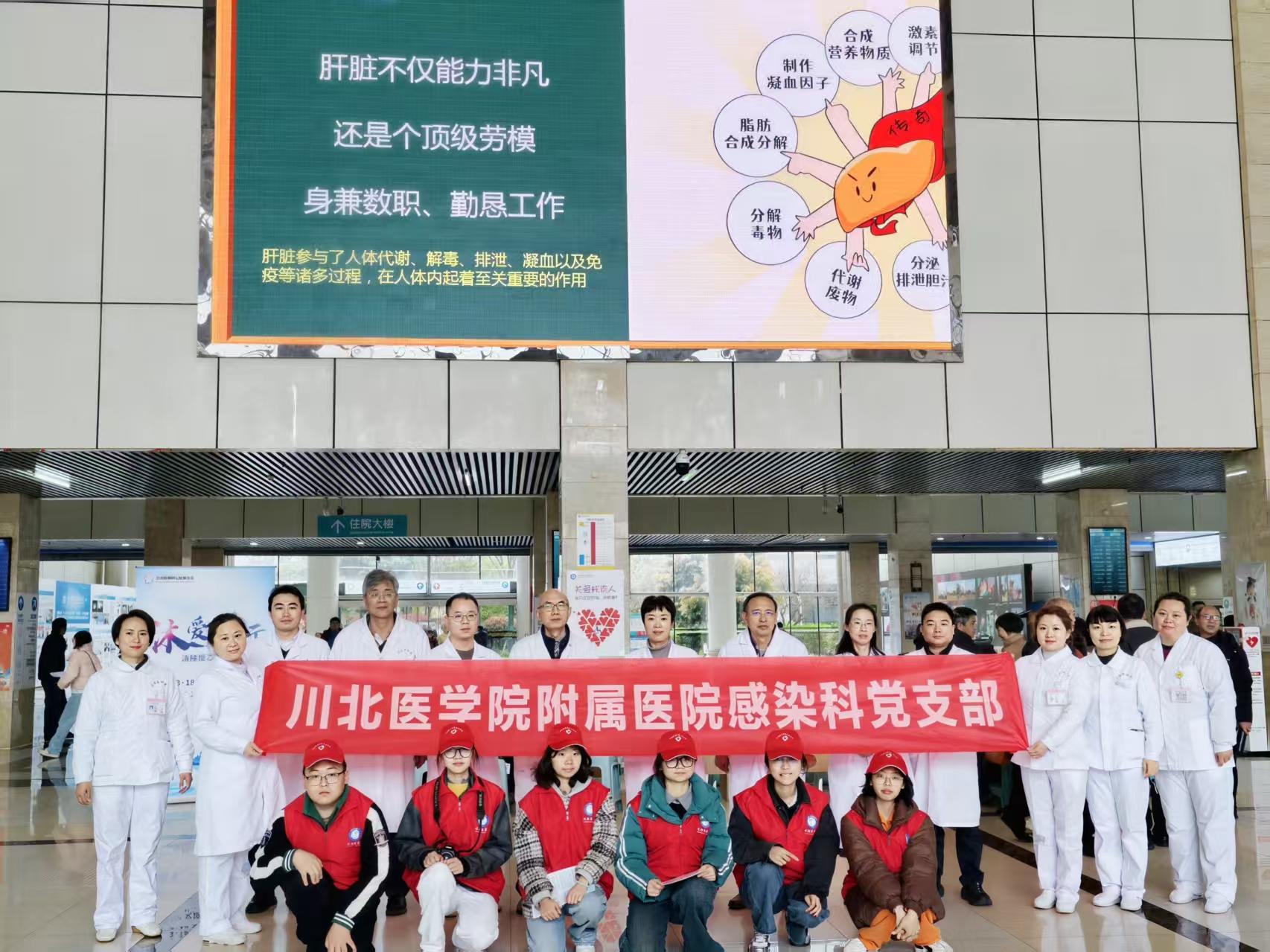 为深入践行“健康中国”战略,扎实推进“我为群众办实事”实践活动,充分发挥党建引领作用,将党建工作与医疗服务深度融合,在第26个“全国爱肝日”来临之际,我院感染科党支部联合肝胆外一科党支部、肝胆外二科党支部,携手川北医学院团委、附属医院团委,于3月18日上午9:00-11:00,在茂源南路院区门诊大厅成功举办公益义诊活动,以实际行动向广大市民普及肝病防治知识,提升群众爱肝护肝意识,传递医者温度。