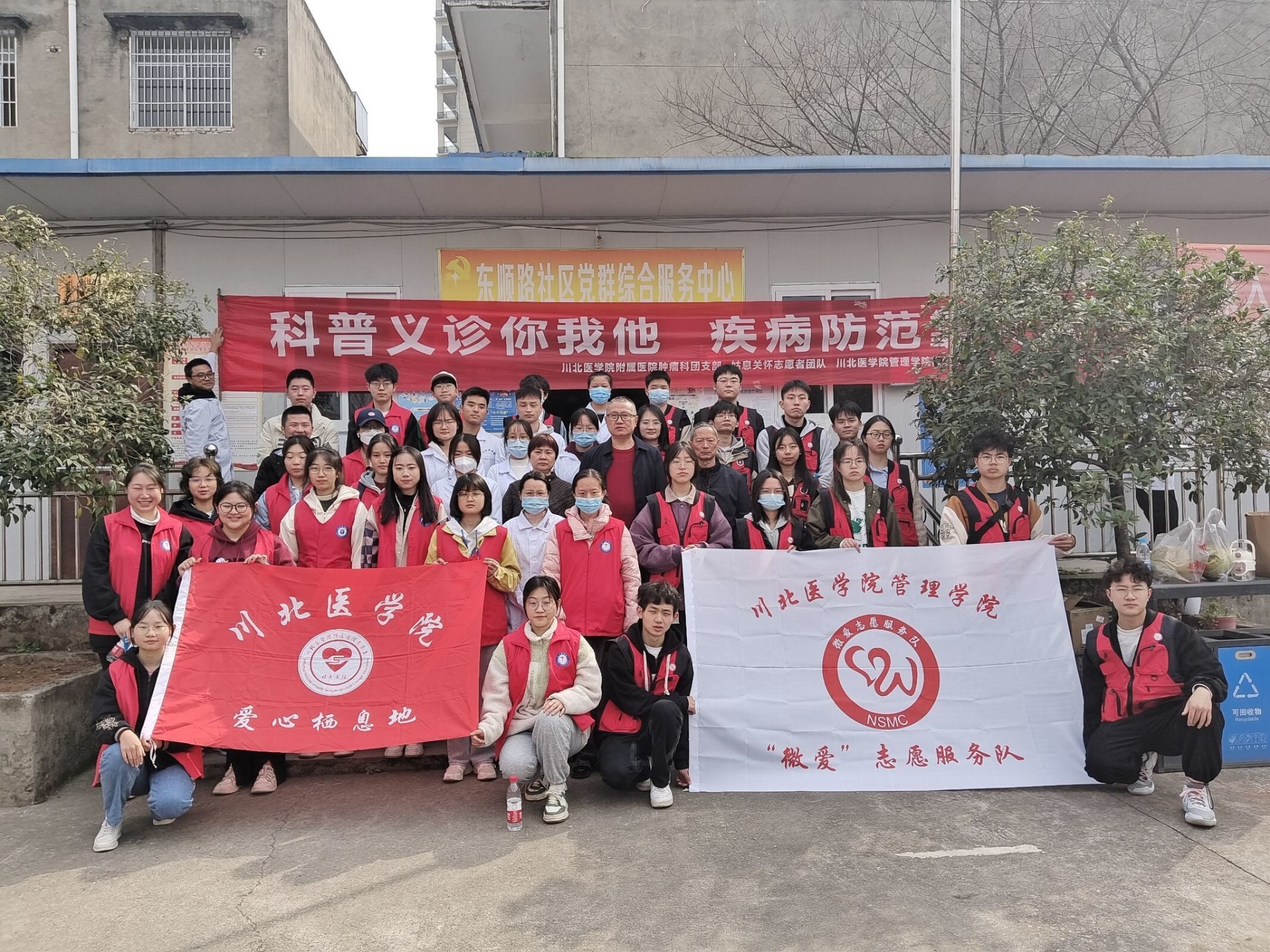为更好的践行雷锋精神,以实际行动引领大学生树时代新风,提高居民健康意识,学习疾病预防知识。3月5日上午8点,川北医学院附属医院肿瘤科与重症医学科团支部以及川北医学院姑息关怀志愿服务队、管理学院“微爱”志愿服务队来到了南充市高坪区东顺路社区开展了一场春季甲型流感预防宣传活动。
