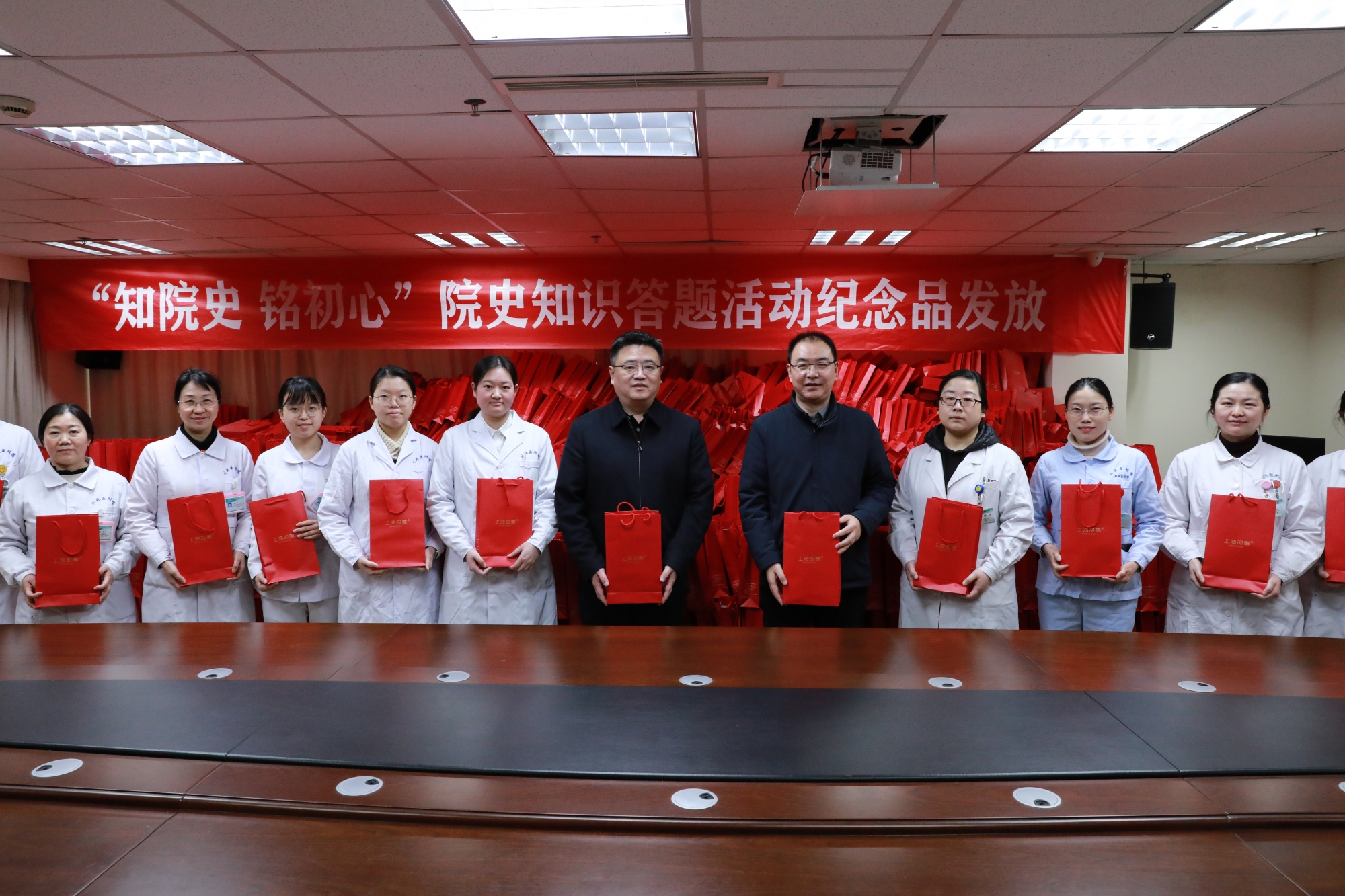 1月17日上午,医院党委书记杨汉丰、党委副书记刘贤君为参与答题的职工代表发放纪念品。杨汉丰强调,院史是医院宝贵的精神财富,每一位职工都应该铭记院史,传承医院文化,为医院的发展贡献力量。刘贤君也借此机会向大家致以新年的美好祝福,并勉励不断提升自身的业务能力和文化素养,共同为医院的美好明天努力奋斗。