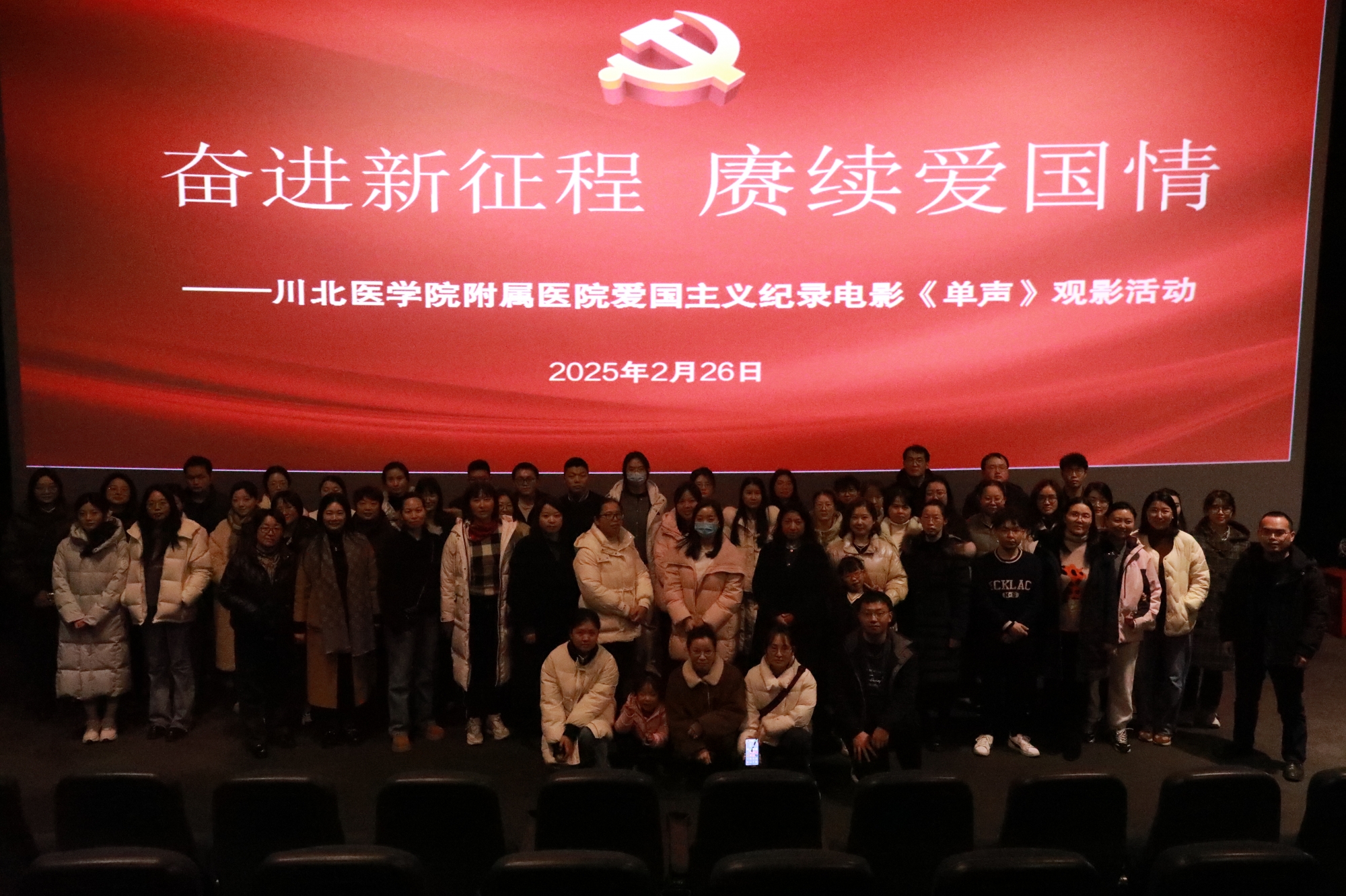为深入学习贯彻党的二十大精神,厚植职工及青年的爱国主义情怀,2月26日,医院工会、团委联合组织工会会员、共青团员代表共同观看爱国主义题材电影《单声》。影片通过真实感人的故事,展现了海外华侨赤子丹心、报效祖国的壮丽人生,激发了在场观众的强烈共鸣。