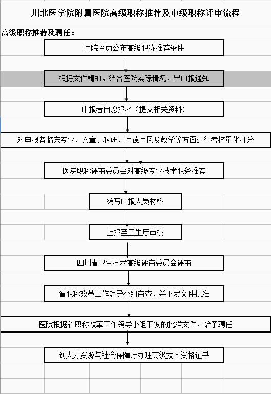 川北医学院附属医院高级职称推荐及中级职称评审流程