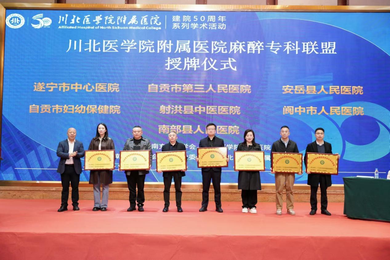 会议开幕式上,举行了川北医学院附属医院麻醉专科联盟授牌仪式,联盟涵盖遂宁市中心医院、自贡市第三人民医院、南充市中医医院等14家单位。联盟的成立标志着区域内麻醉学科协同发展的新里程碑,为促进医疗资源整合、提升区域医疗服务能力奠定了坚实基础。联盟单位代表还围绕2025年工作计划进行深入讨论,共同谋划未来发展方向,推动区域医、教、研、质控的全面提升,助力区域医疗事业再上新台阶,为人民健康保驾护航。